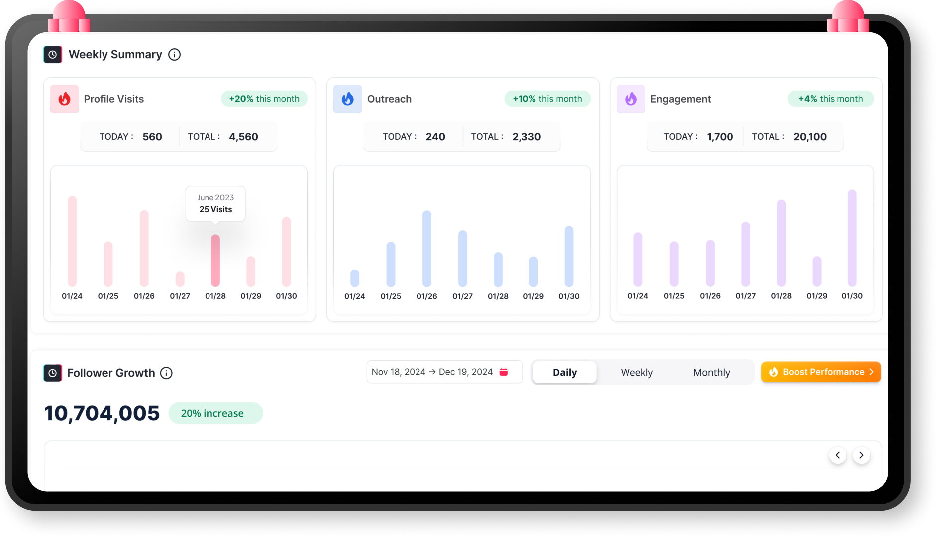 Our combination of AI algorithms, expert insights and real-time data tools ensures you connect with followers who genuinely engage with your content